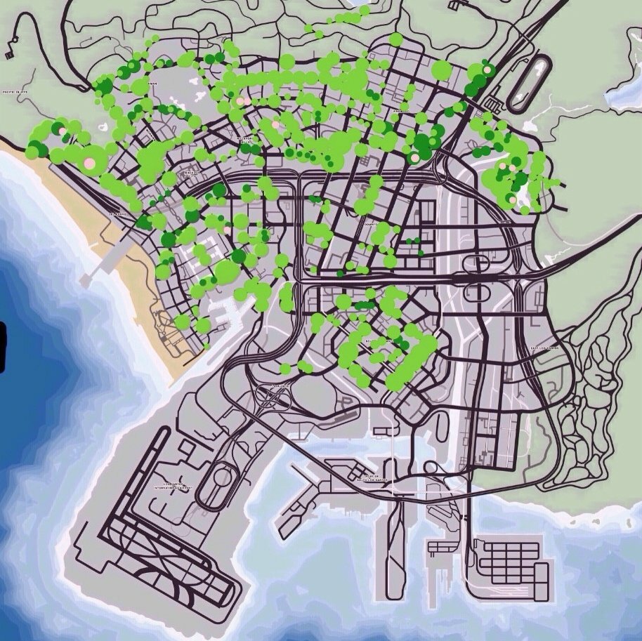 Cette map permet d'ajouter de nombreux palmiers le long des routes de Los Santos afin de rendre la ville plus réaliste et plus esthétique.