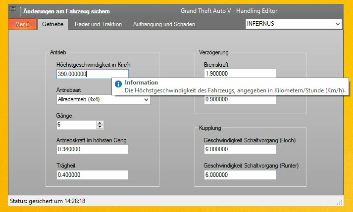 GTA V Handling Editor est un utilitaire vous permettant de modifier très facilement le handling des véhicules de GTA 5.