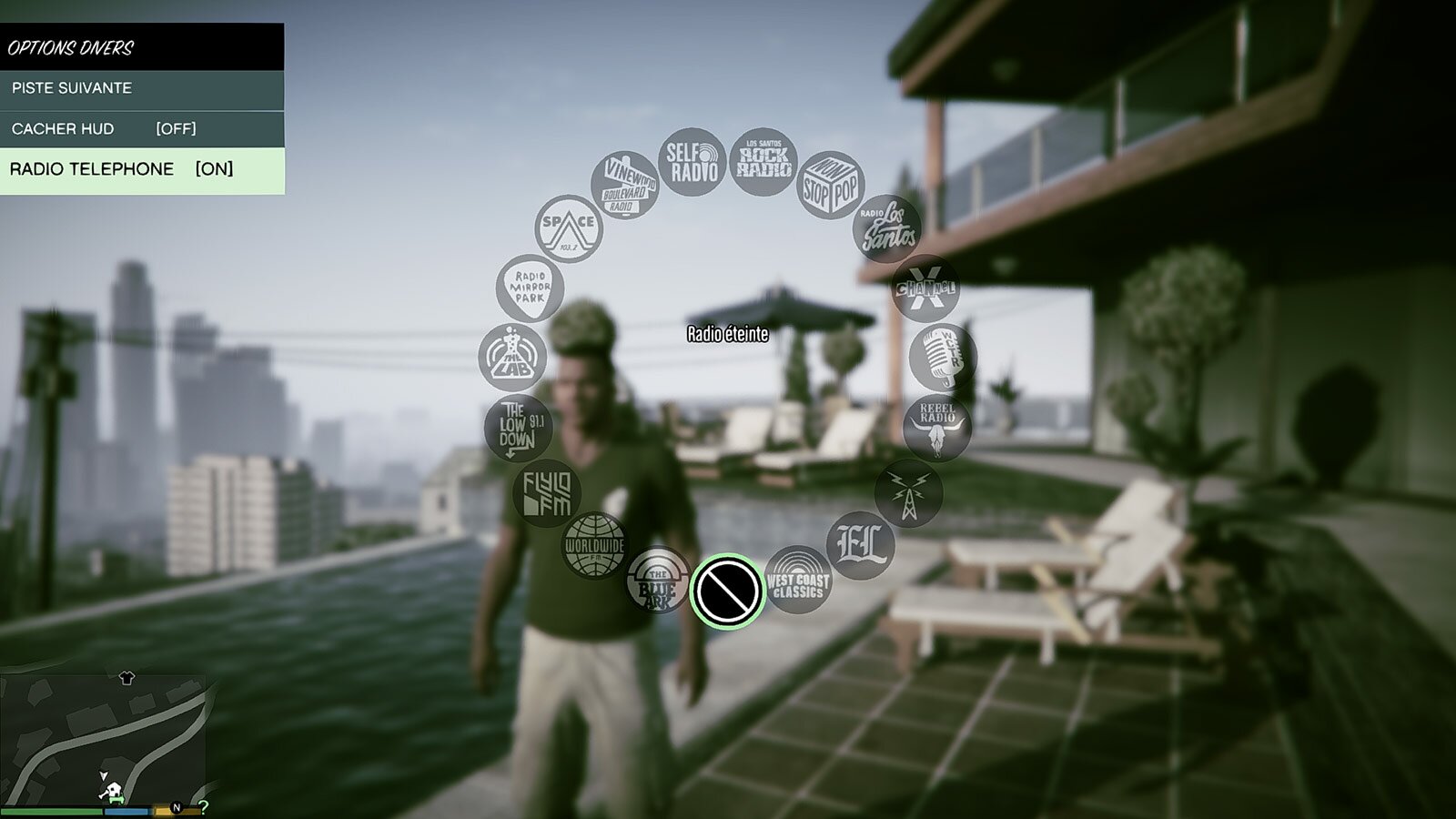 Le menu radio se trouve dans la partie DIVERS du trainer et vous permet d'accéder à toutes les stations de radio sans être dans un véhicule.