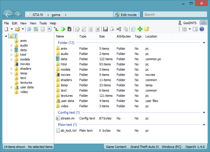 OpenIV est un éditeur et gestionnaire d'archives pour les versions PC de GTA IV/EFLC et Max Payne 3.
