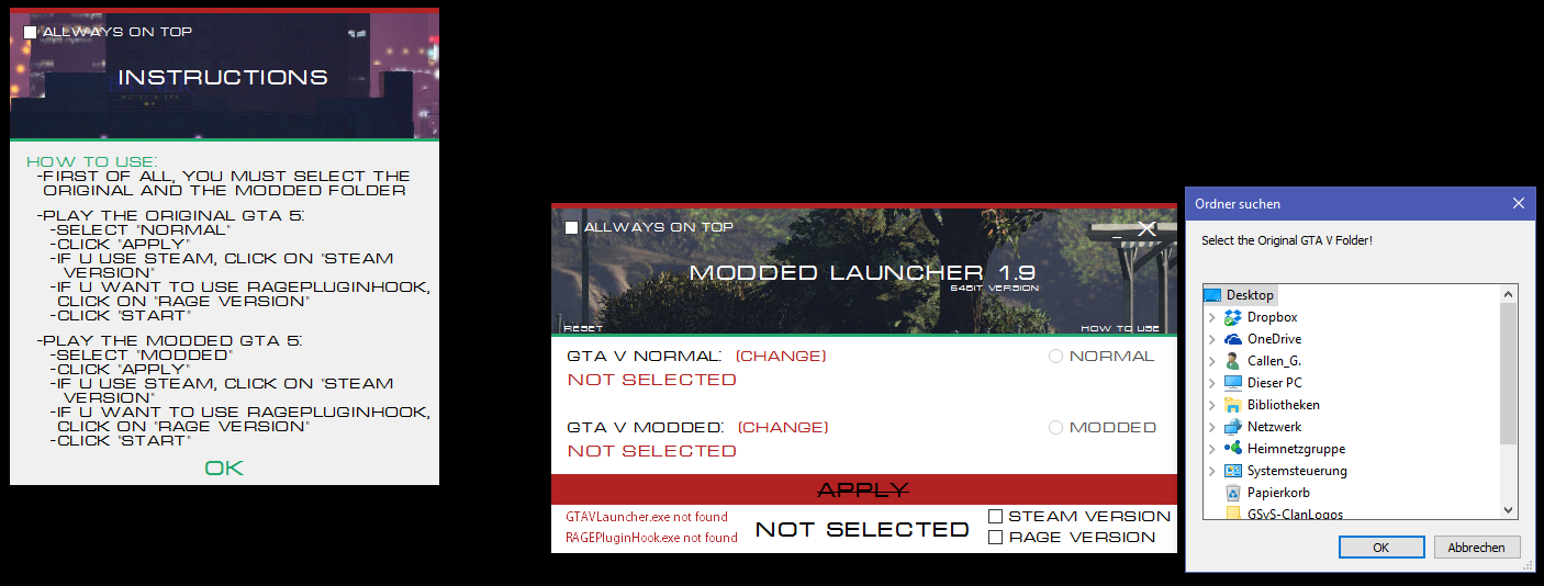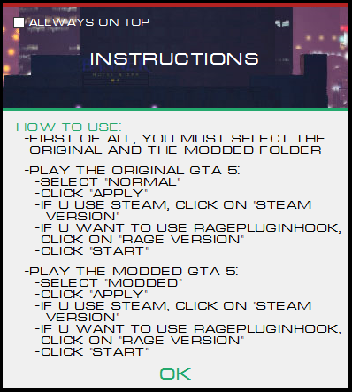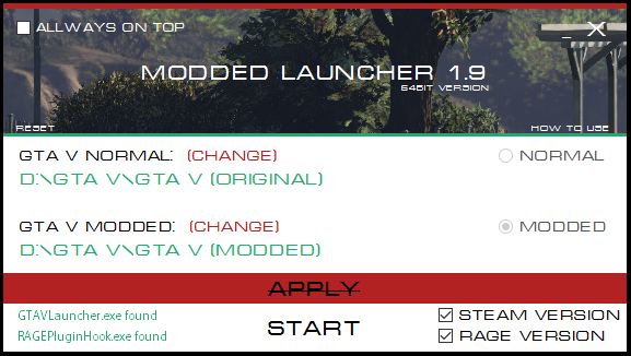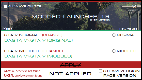 GTA V - Modded Launcher est un utilitaire permettant de swicther entre la version Vanilla (originale) de GTA 5 et la version moddée.