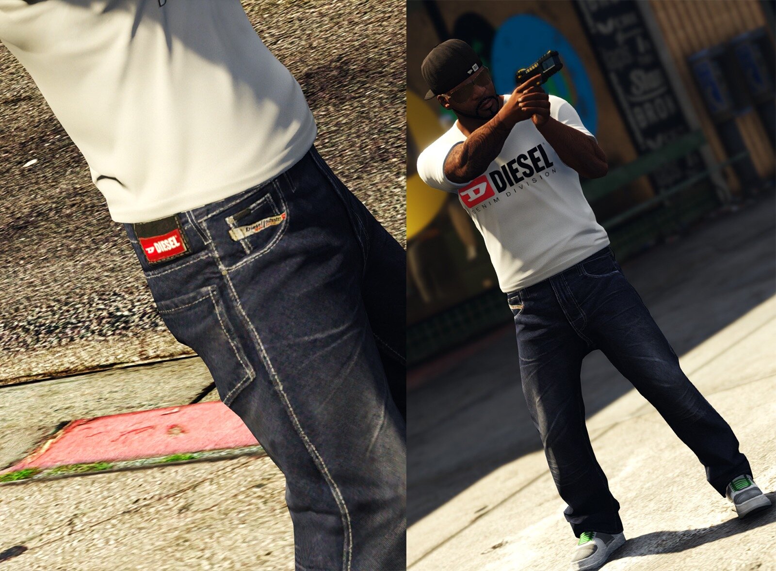 Ce pack comprend un nouveau jean et un T-Shirt floqués Diesel pour l'inventaire de Franklin dans GTA 5 sur PC.