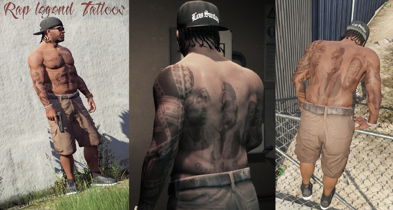 Ces tatouages représentent des rappeurs connus tels que 2pac, Eazy-E ou encore Biggie Smalls.