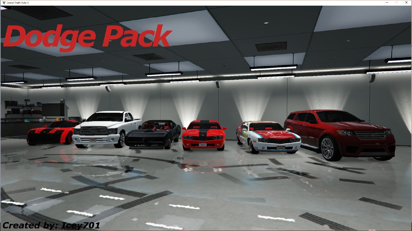 Ce pack remplace les textures des véhicules Bravado de GTA 5 pour leur donner l'apparence de leurs équivalents Dodge.