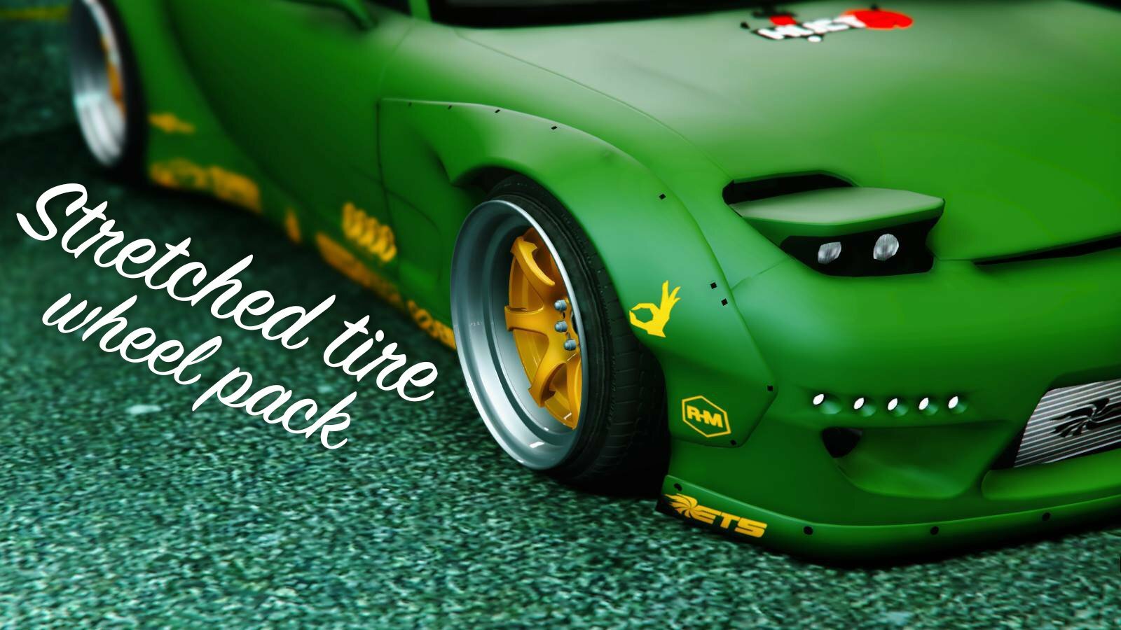 Ce pack comporte de nouvelles jantes de type "Stretched" pour pneus larges pour GTA 5.