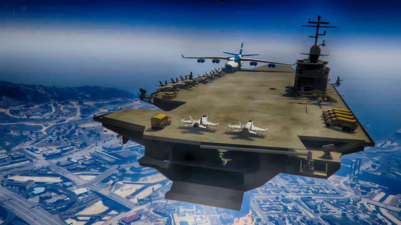 Porte-avions volant pilotable converti pour GTA 5.